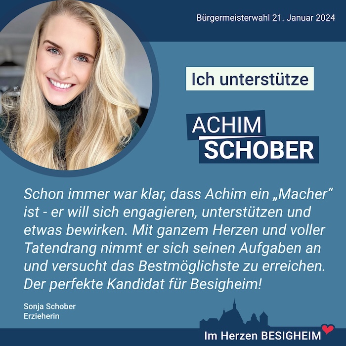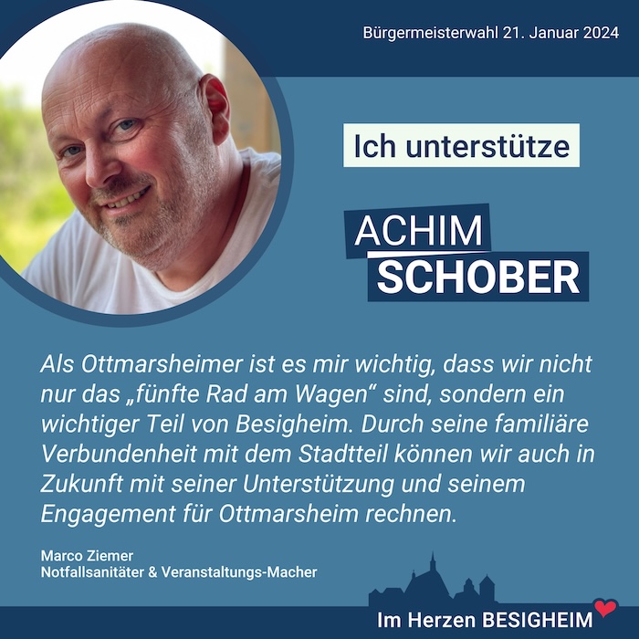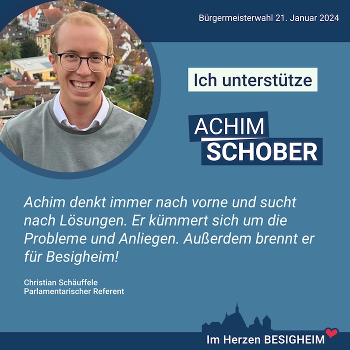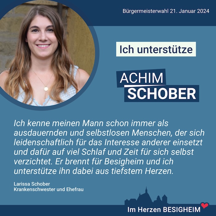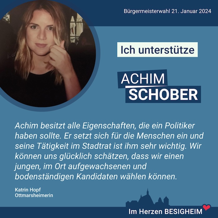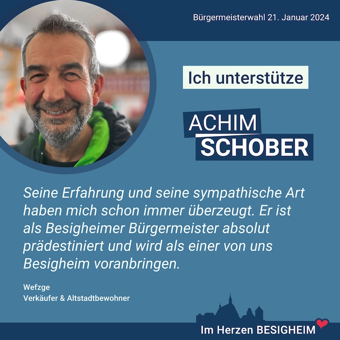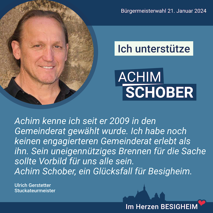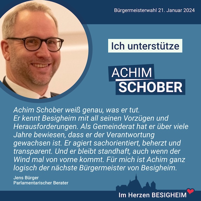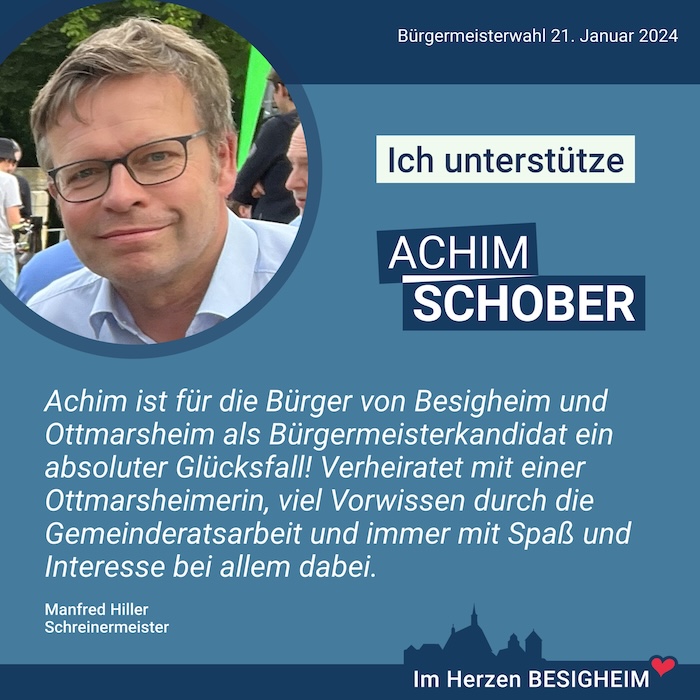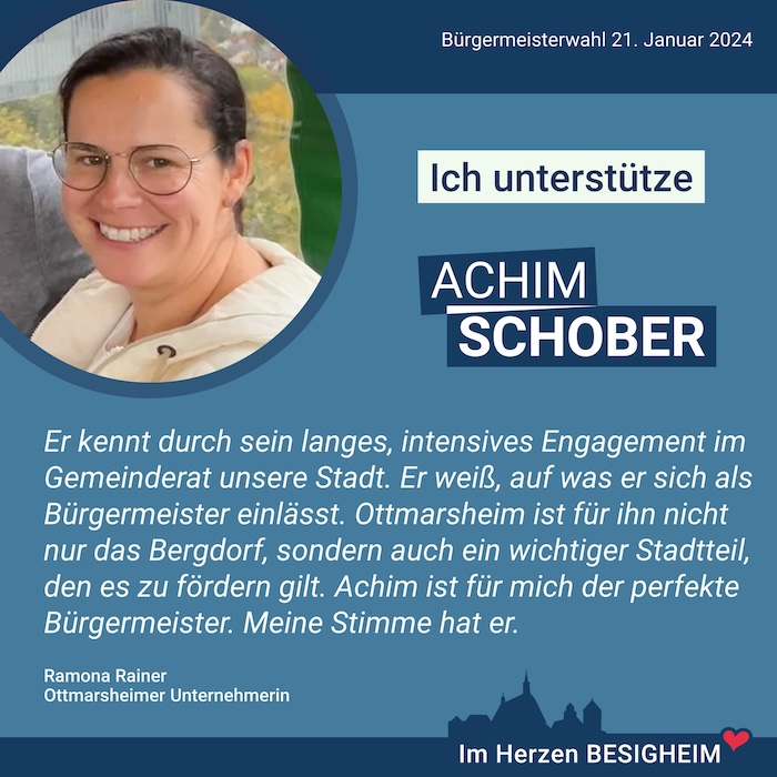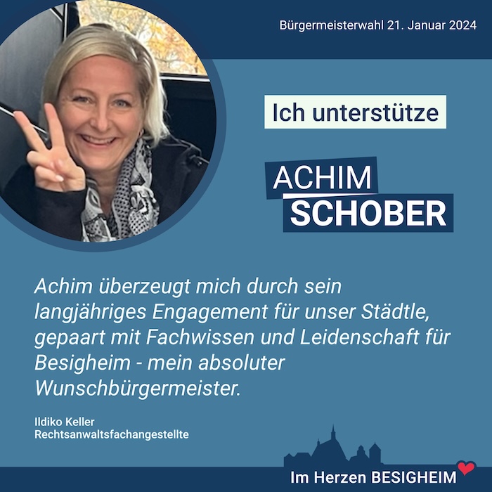 Ich bin die Tage viel in Besigheim und Ottmarsheim unterwegs. Sprechen Sie mich gerne an. Ich freue mich auf den Austausch.