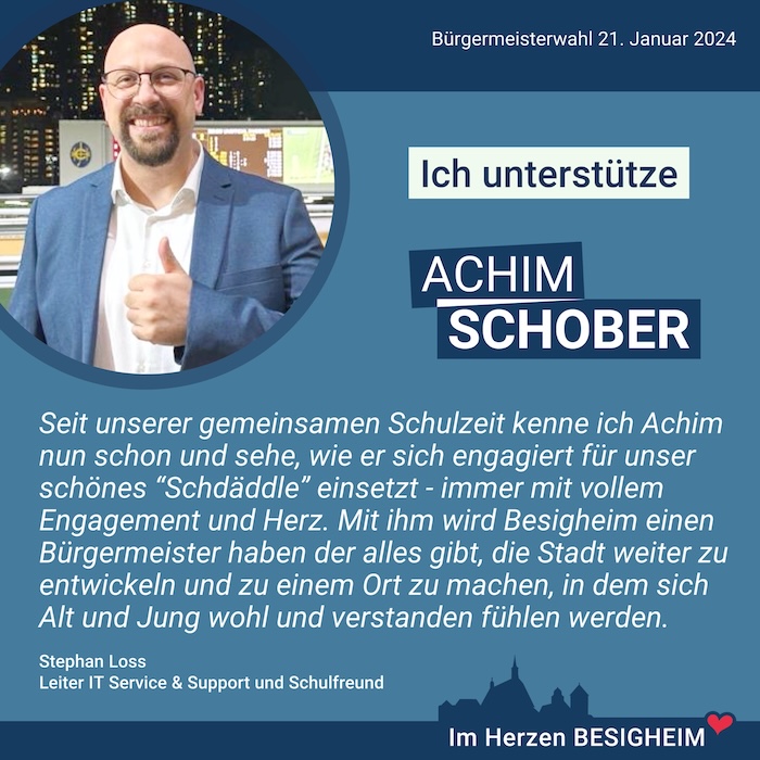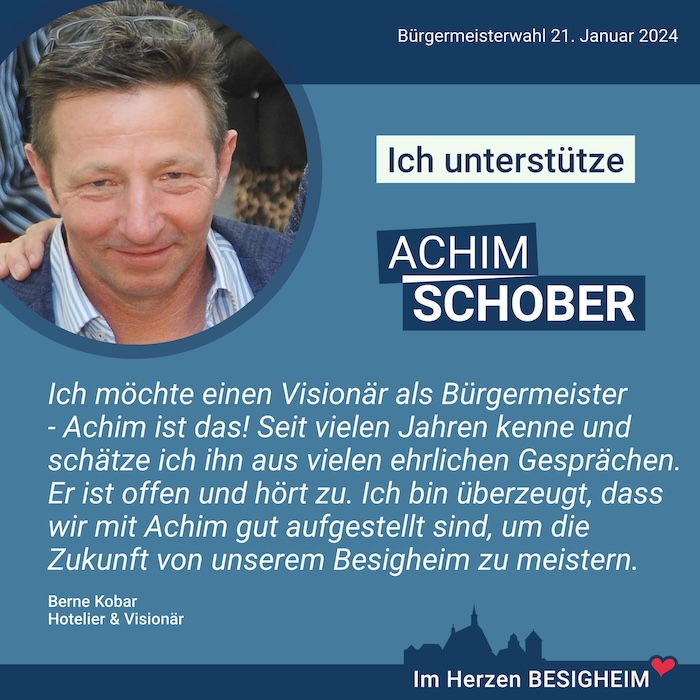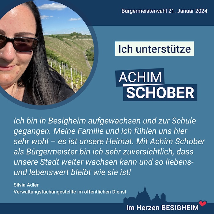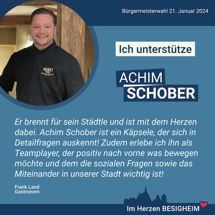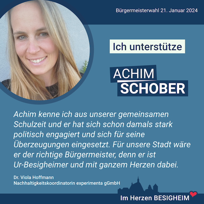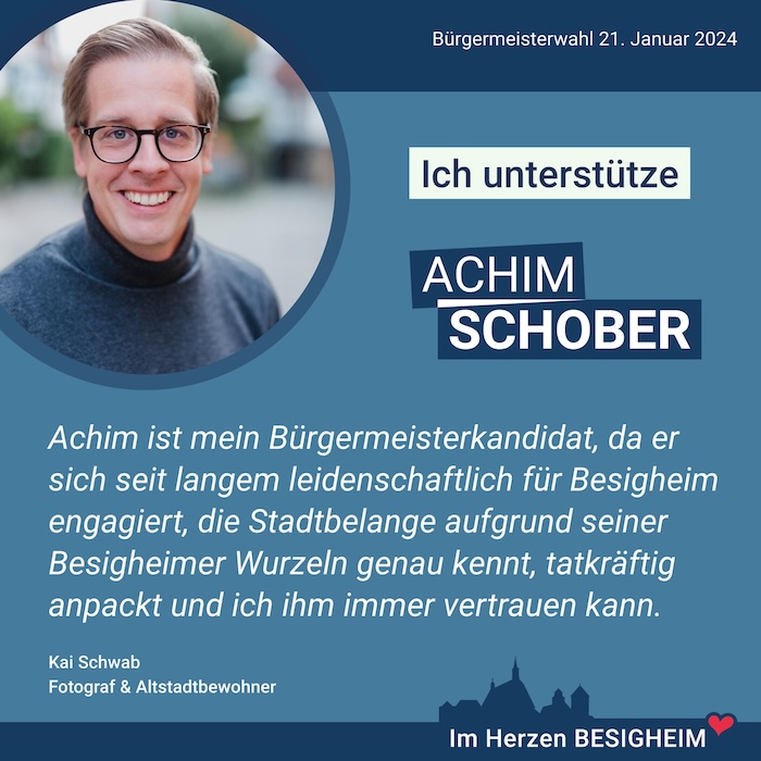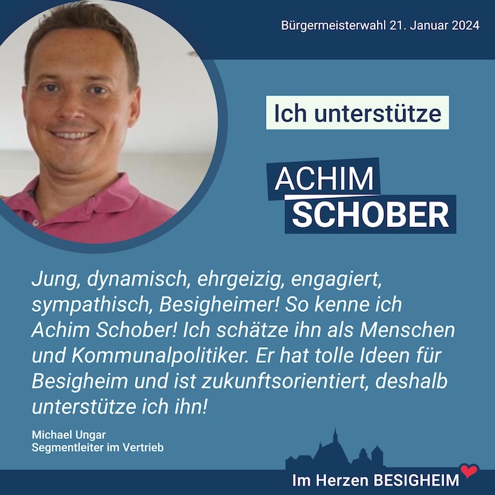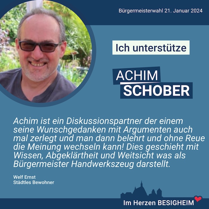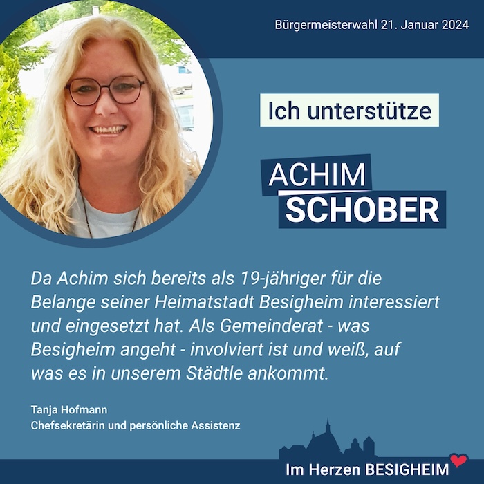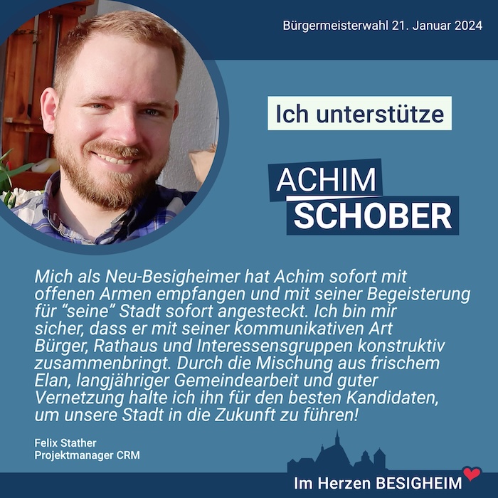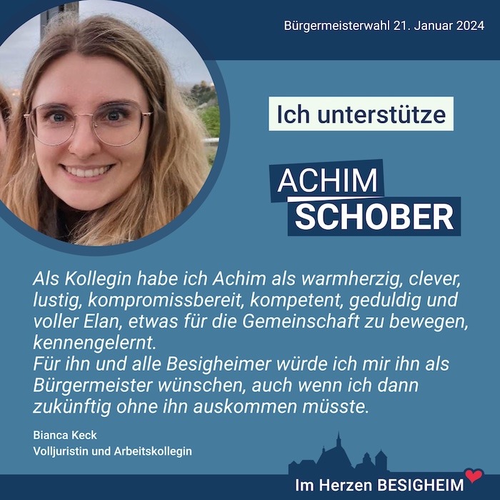 Ich bin die Tage viel in Besigheim und Ottmarsheim unterwegs. Sprechen Sie mich gerne an. Ich freue mich auf den Austausch.