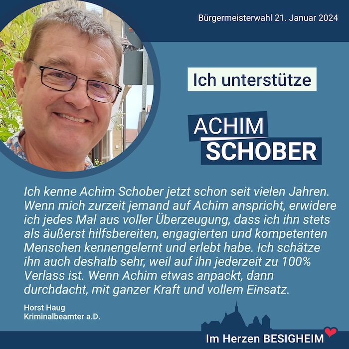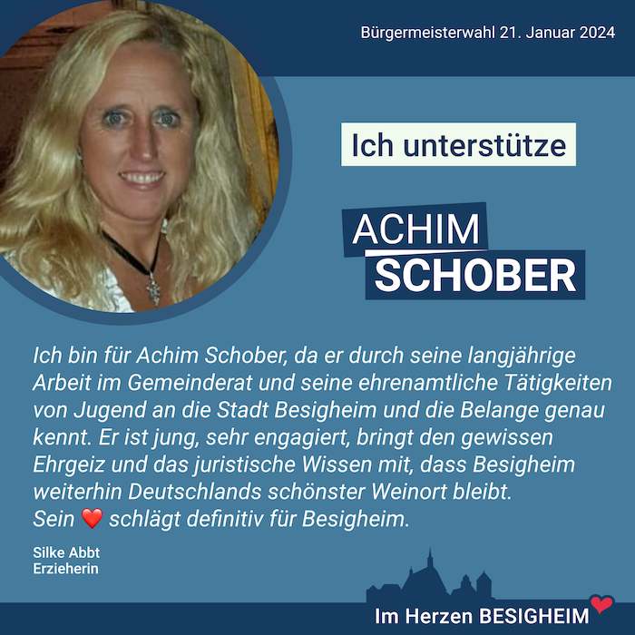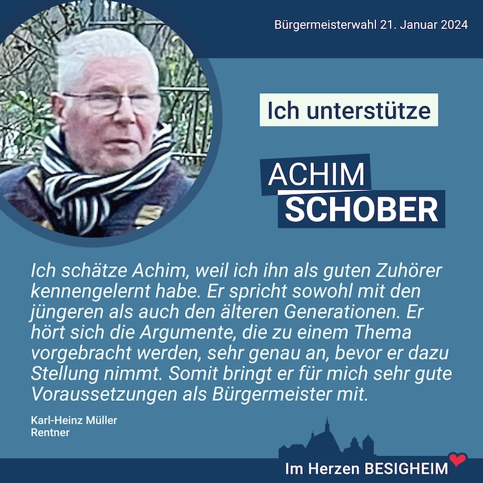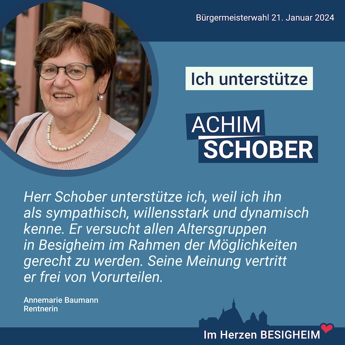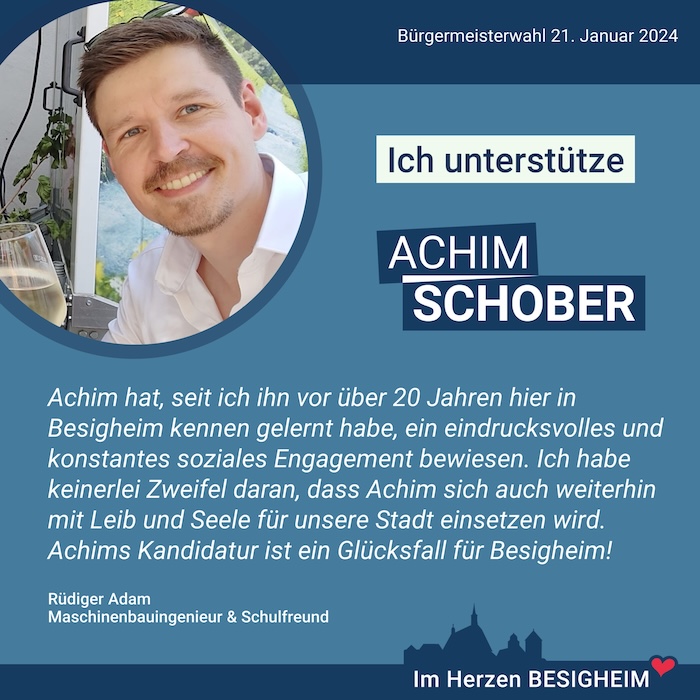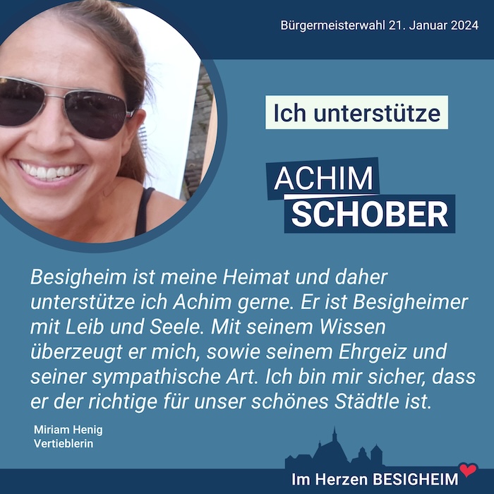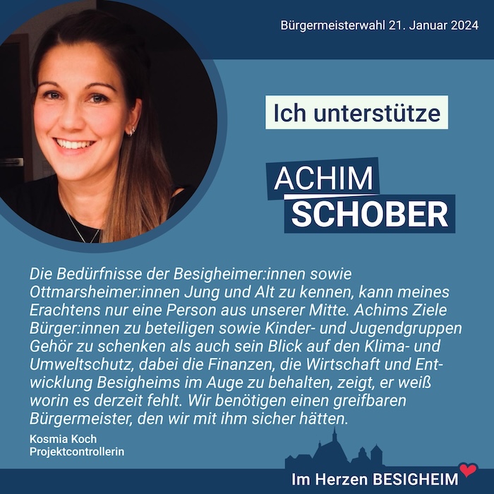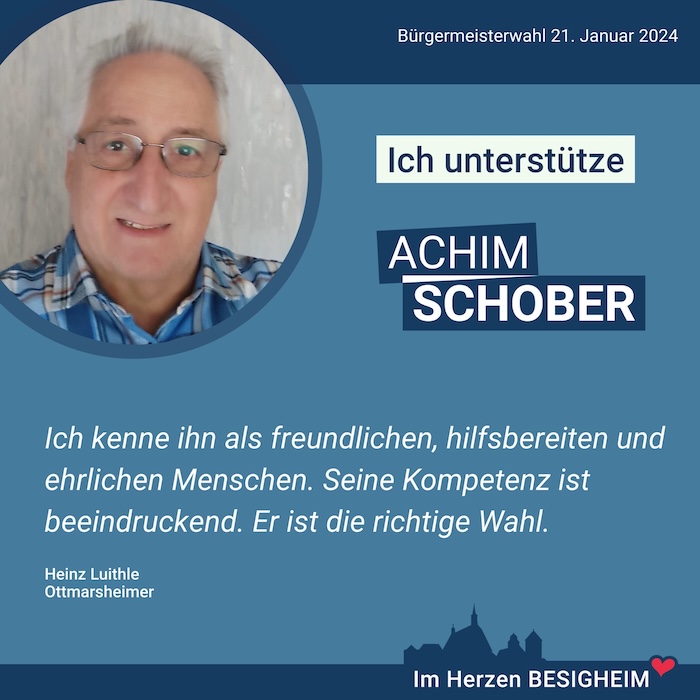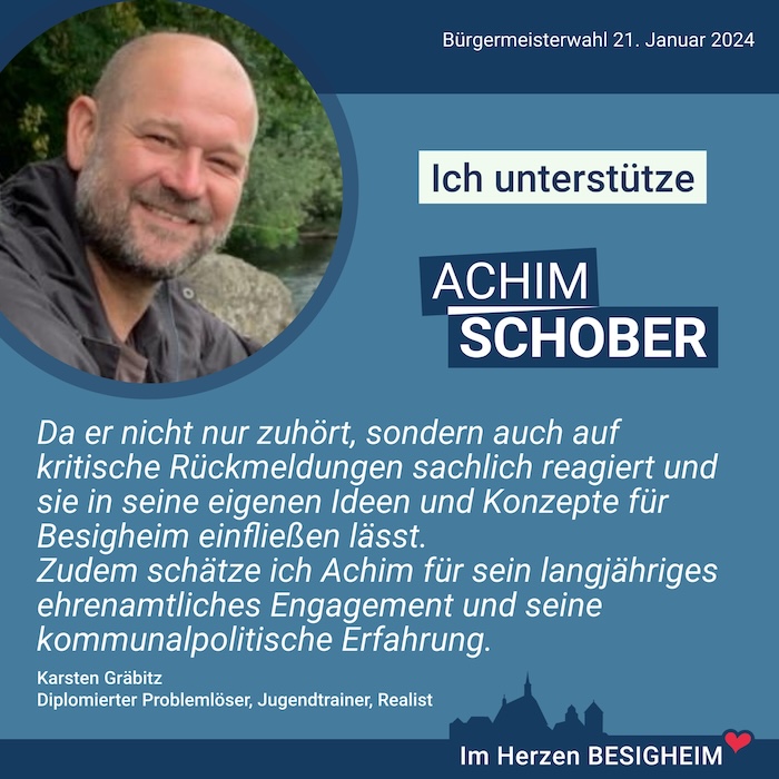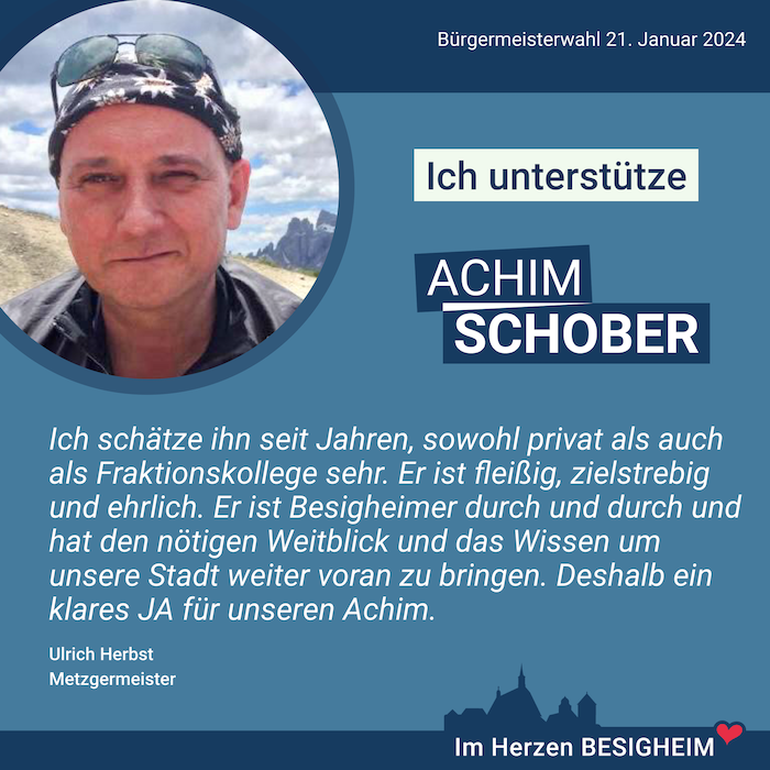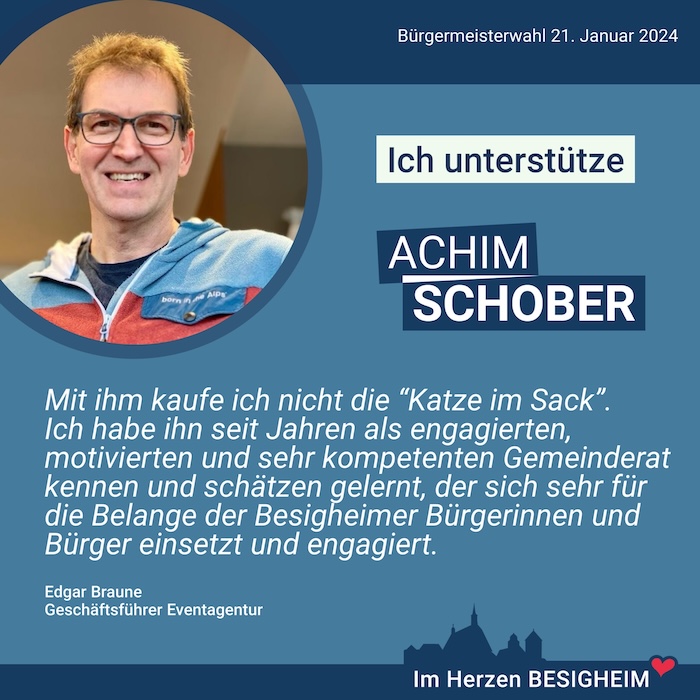 Ich bin die Tage viel in Besigheim und Ottmarsheim unterwegs. Sprechen Sie mich gerne an. Ich freue mich auf den Austausch.
